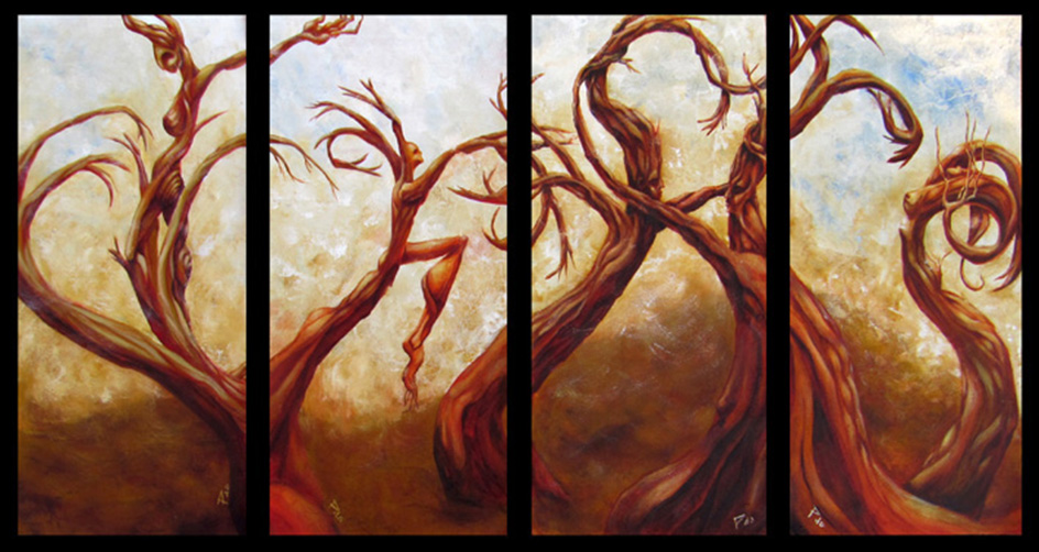 Árboles bailando nació de una caminata al atardecer en un bosque cercano. Había viento, y los árboles parecían realmente moverse al ritmo de una música invisible. No pude dejar de pensar en ellos como seres vivos que también sienten, que celebran, que sufren y que se comunican. Esta obra es una forma de honrar ese momento y esa sensación.